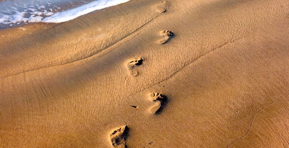 picturesque footprints in beach sand
